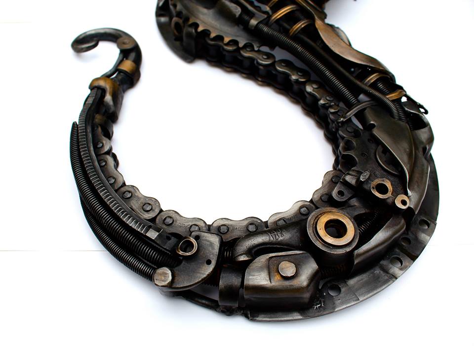 Der britische Metallkünstler Allan Williams aus Sussex stellte dieses handgemachte Seepferdchen im Steampunkstil aus diversen Zahnrädern, einigen Kleinmotorteilen und einer alten Schreibmaschine her; grandios, ich danke ihm dafür.